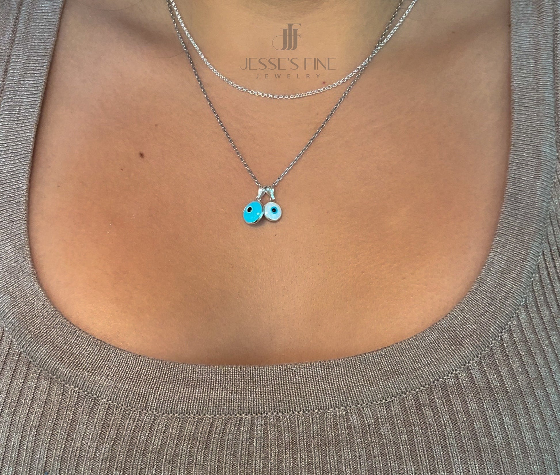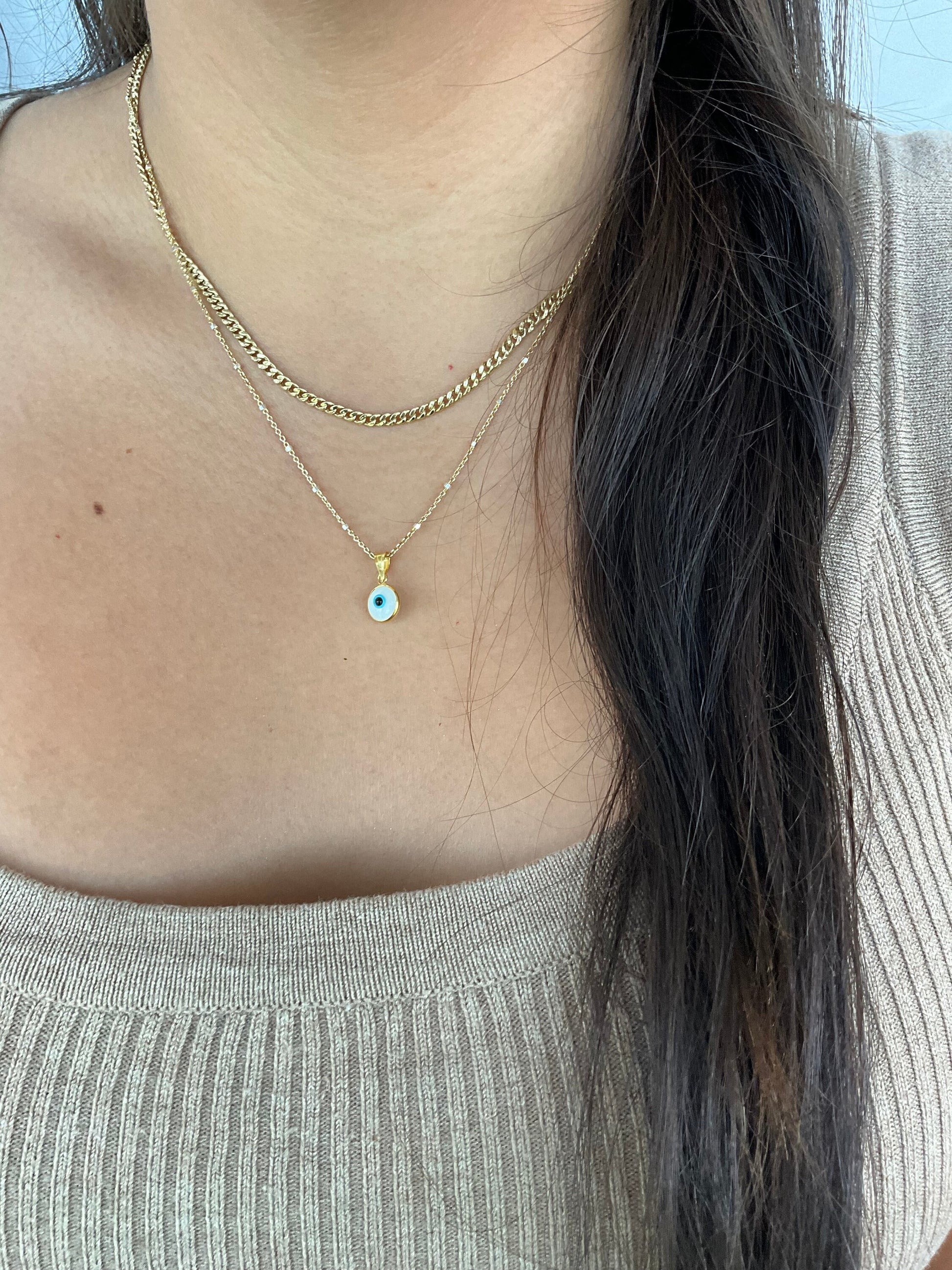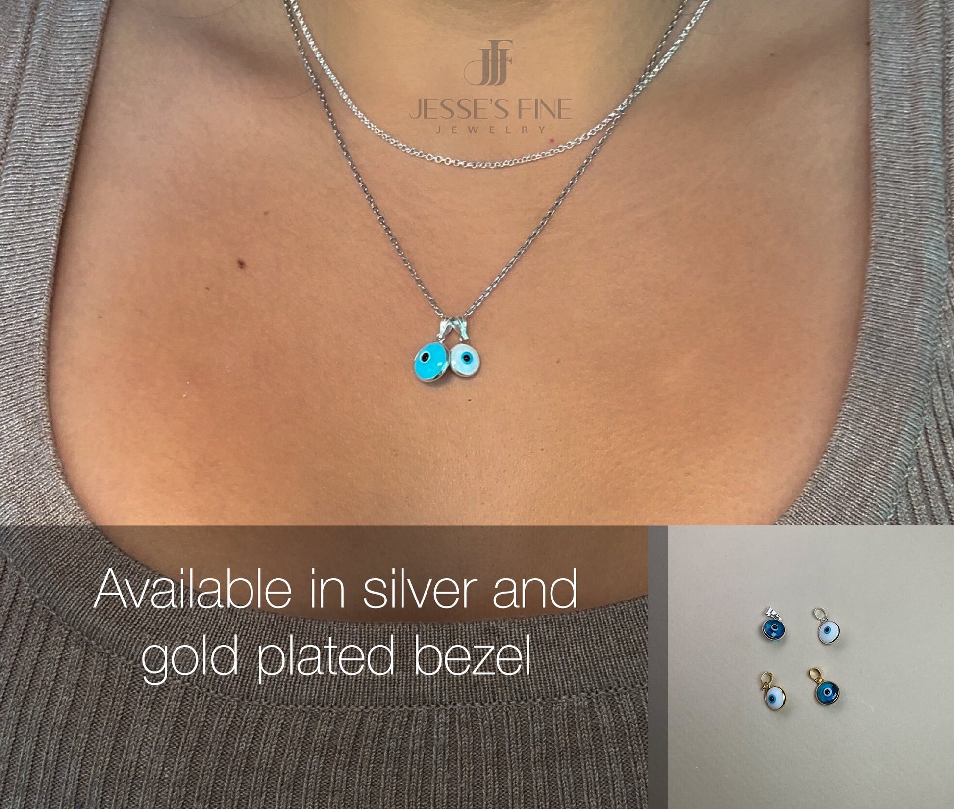 Dainty round bezel set evil eye pendant in sterling silver is the perfect size to add to your necklace