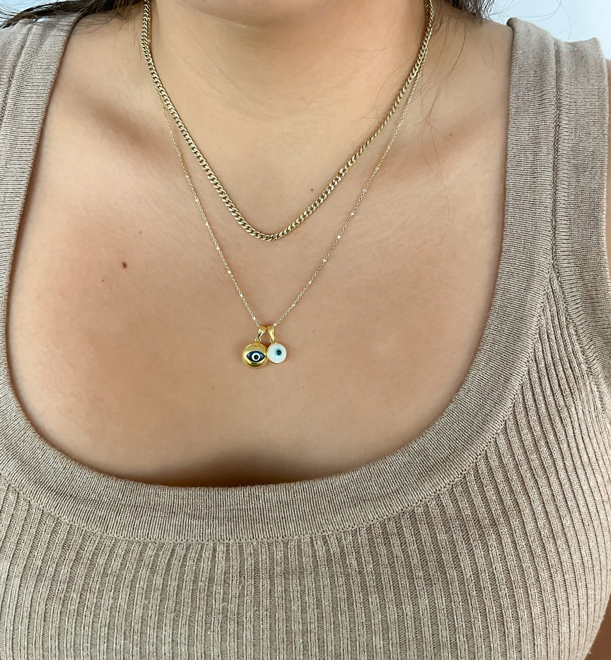 Bezel round dainty white Evil Eye puffed Pendant silver and gold plated Good Luck Round Protection Jewelry dainty Pendant amulet charm