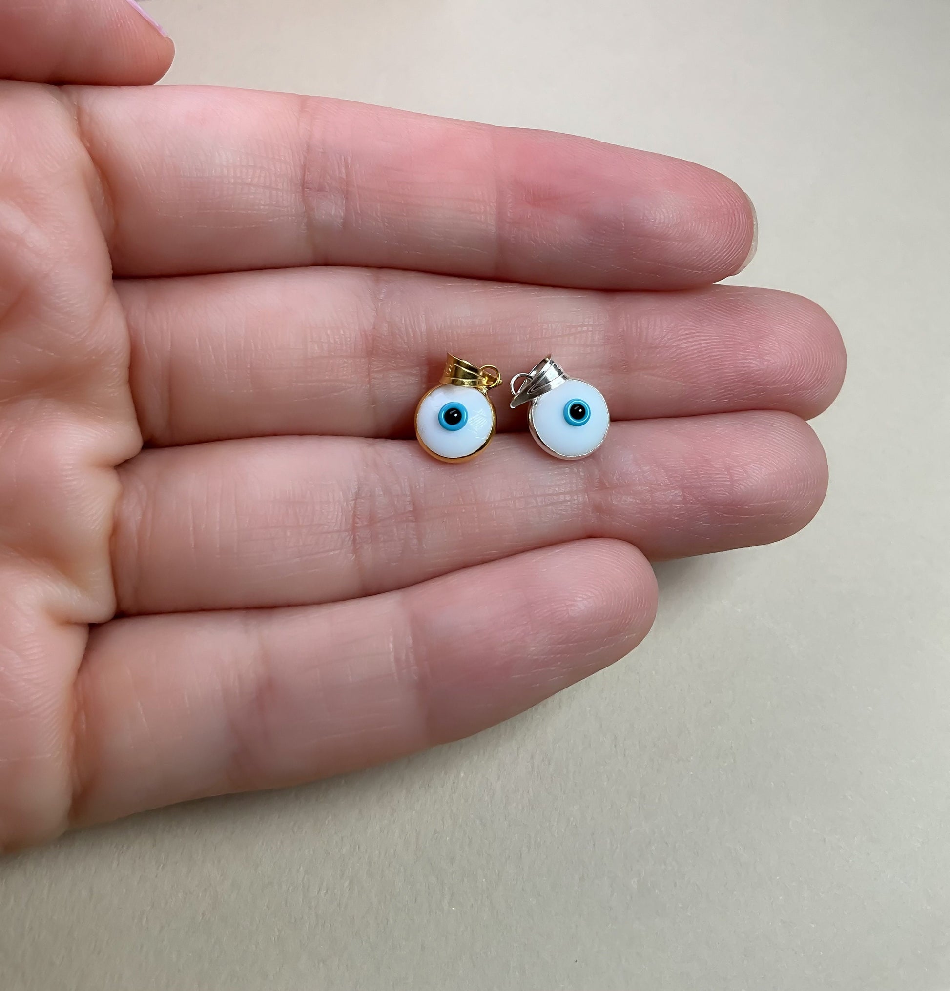 This dainty sterling silver evil eye pendant is approximately 7 mm