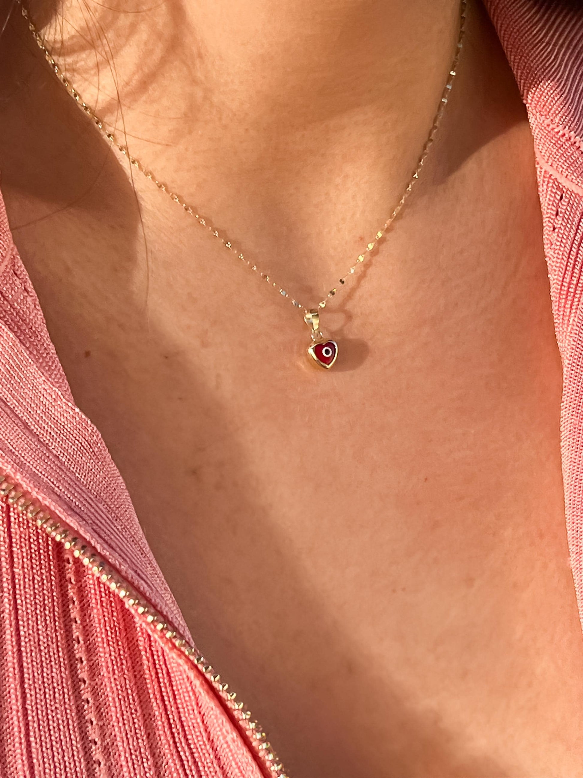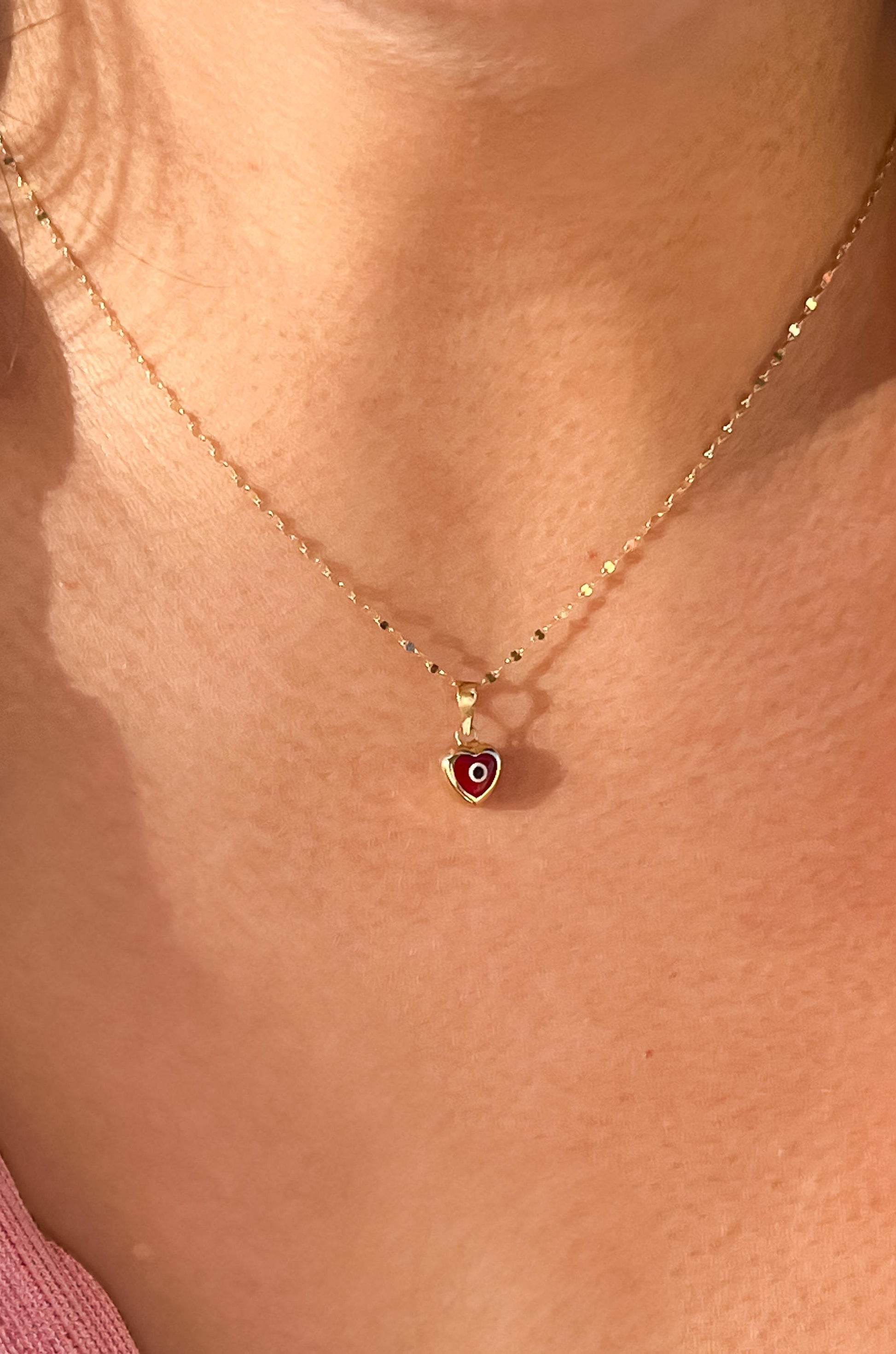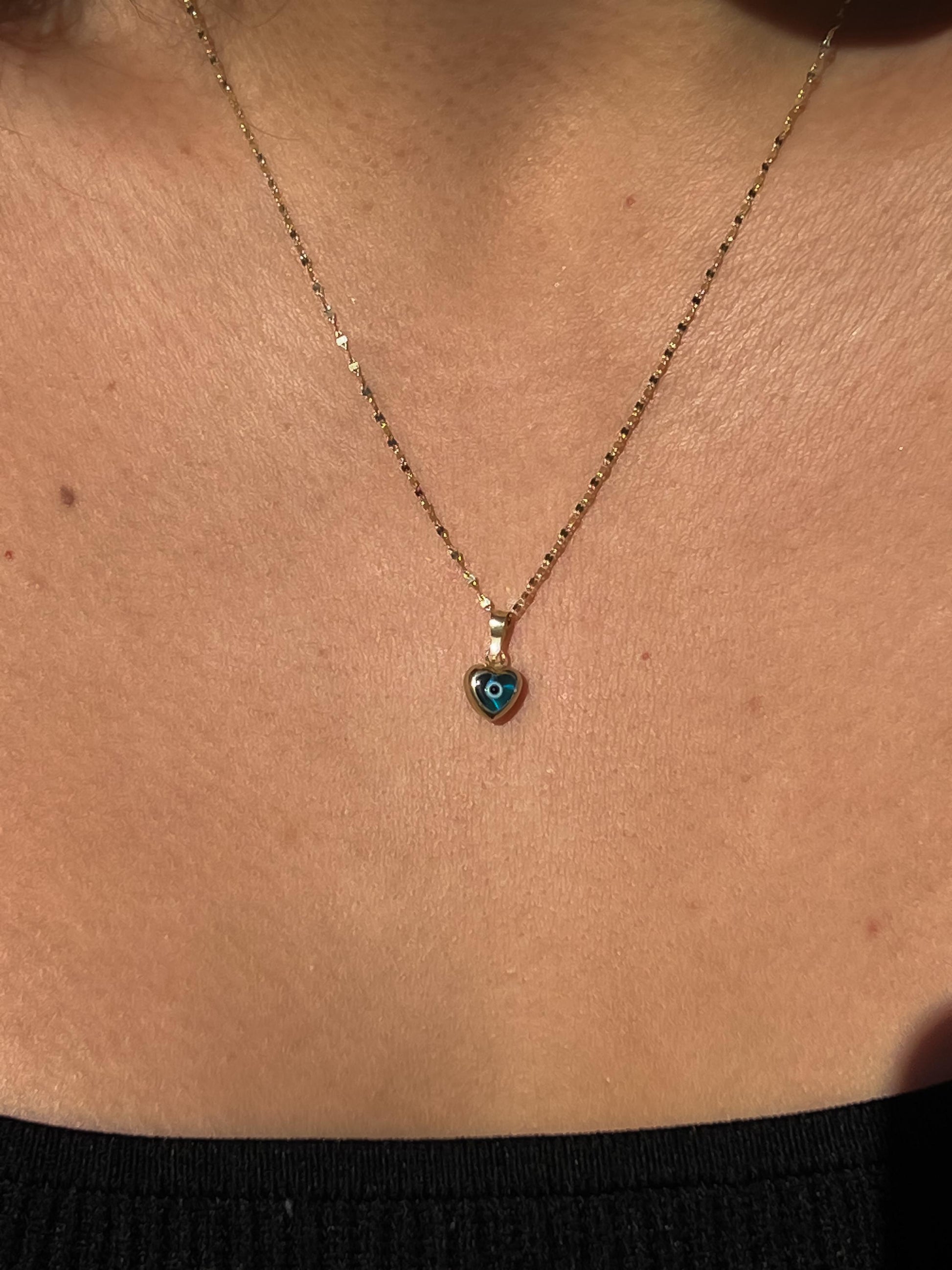 This 10k yellow gold dainty heart evil eye pendant makes the perfect accessory to any occasion or outfit