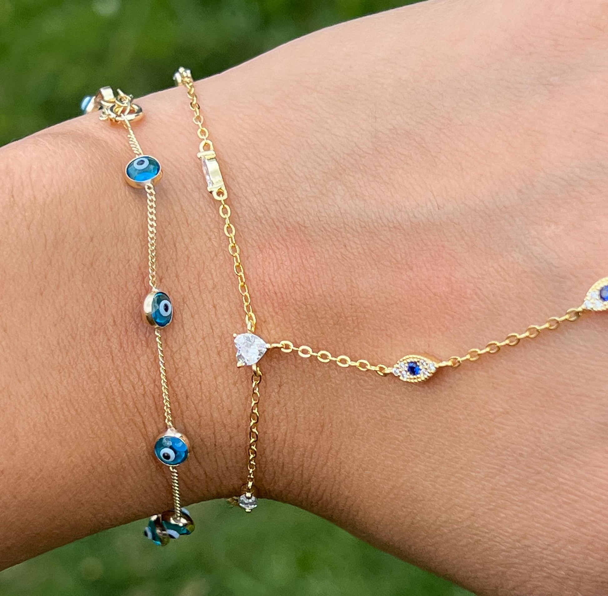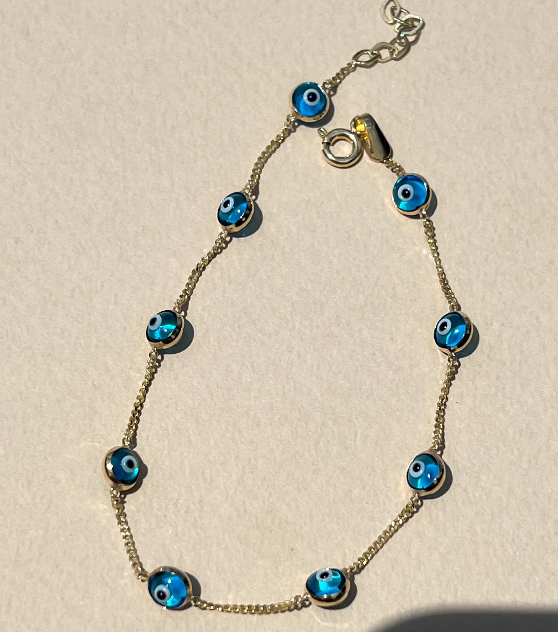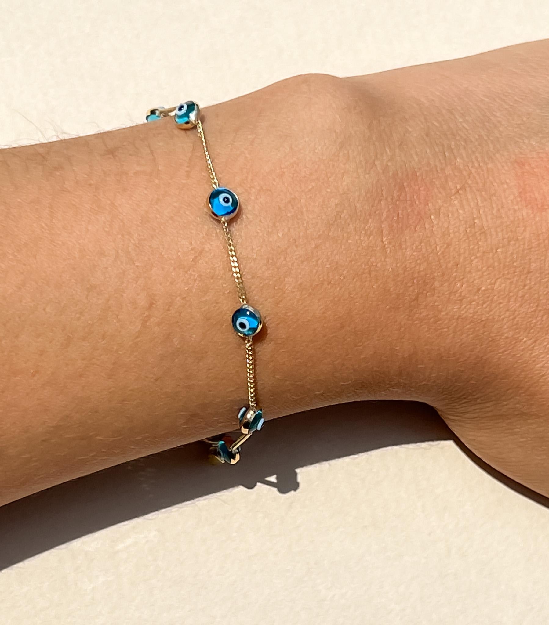 Dainty real gold Evil Eye Bracelet Tennis Bracelet 10k gold Bracelet Evil Eye Dainty Evil Eye Charm Bracelet for her evil eye stacking
