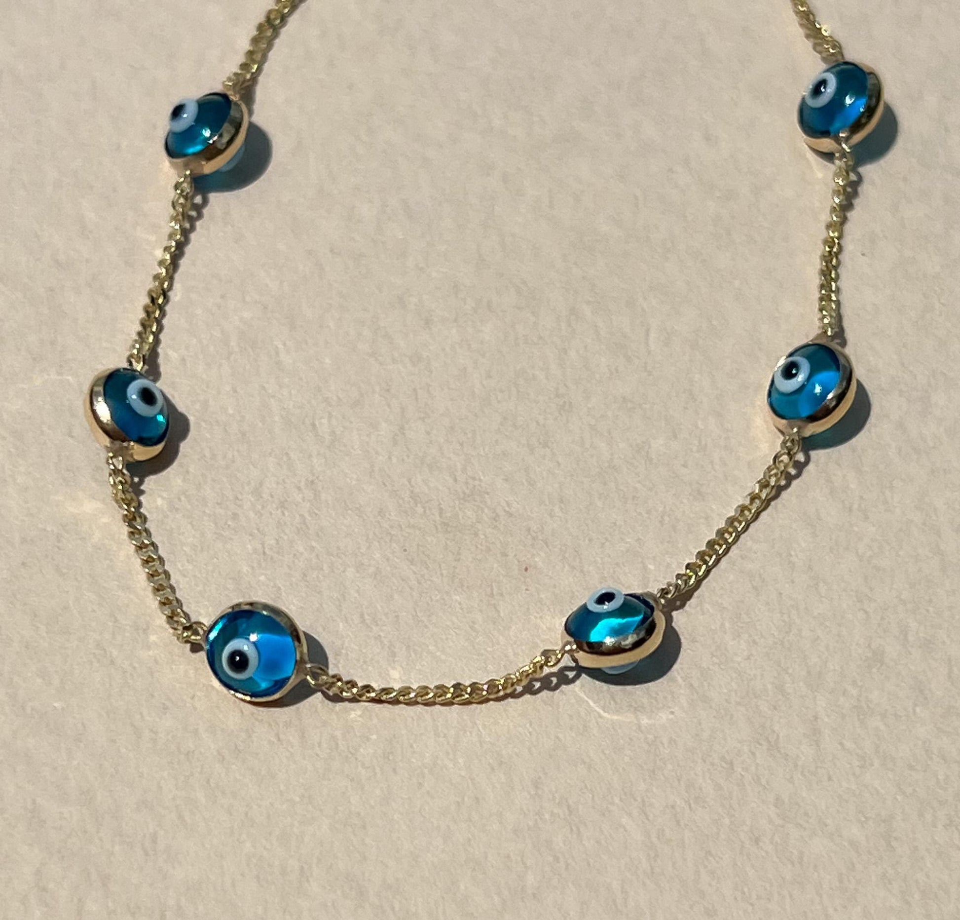 This dainty evil eye bracelet is a dainty curb chain style