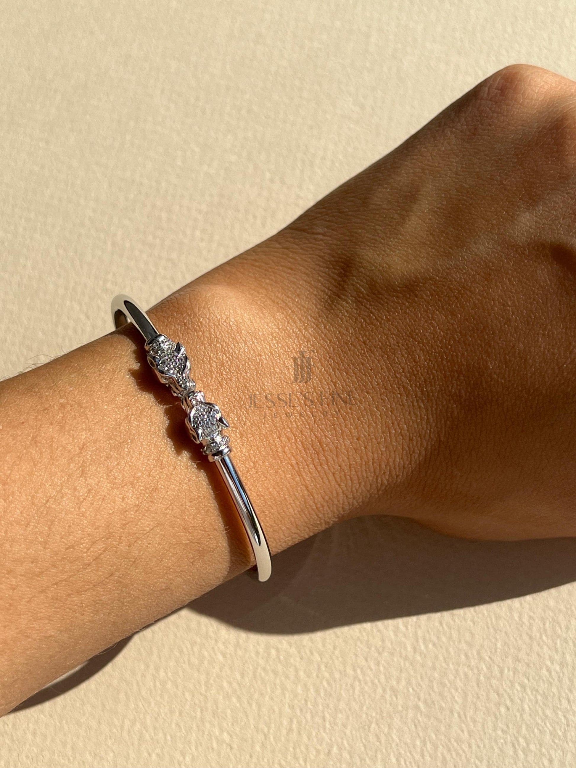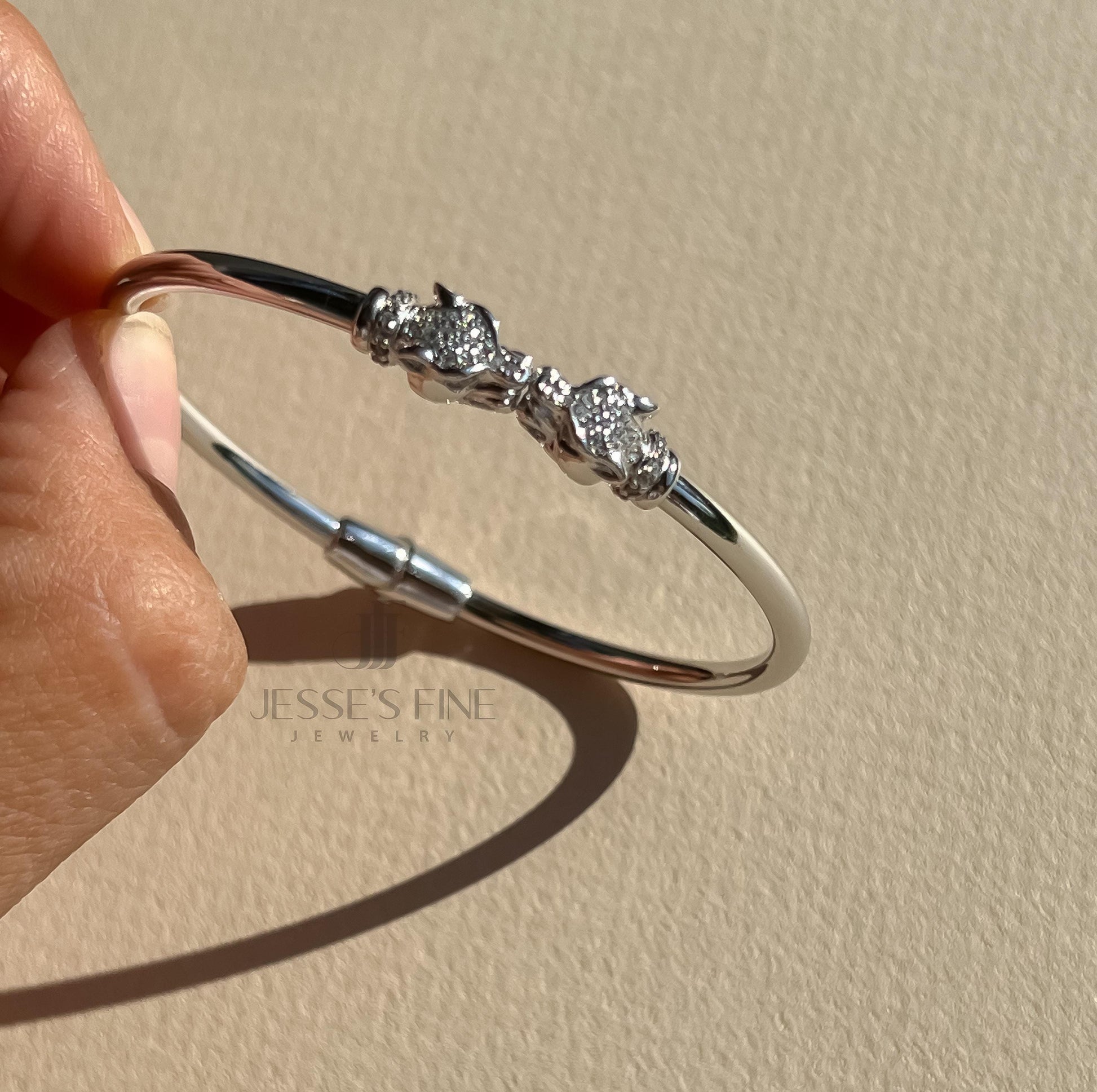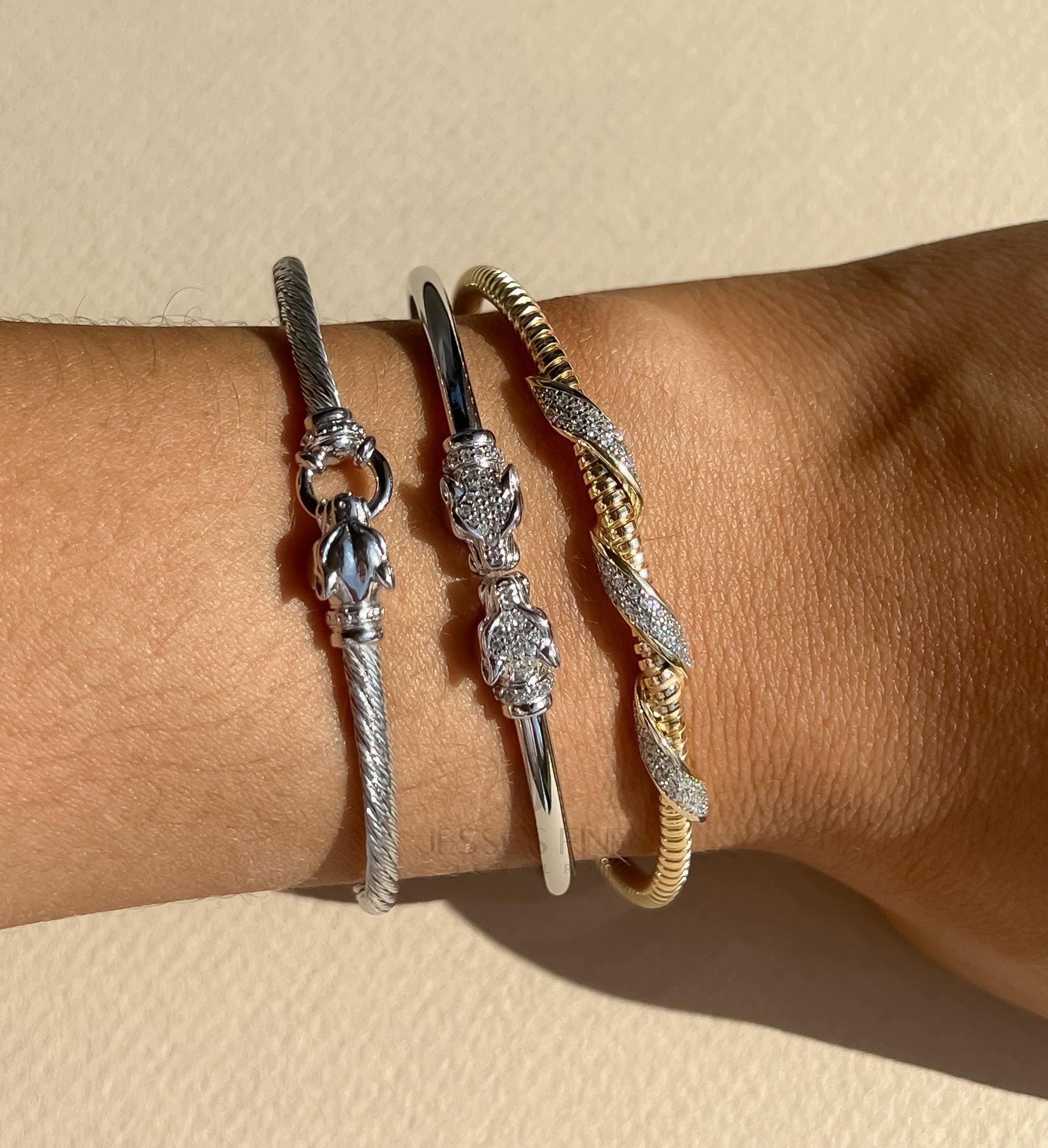 Double panther head gold plated sterling silver cuff hinged bangle makes the perfect accessory for any outfit. This bangle is unisex This double panther bangle is sure to make a statement This is a fine crafted bangle comes packaged ready to be gifted for a special loved one This double panther cuff is gold plated sterling silver with cubic zicornia details