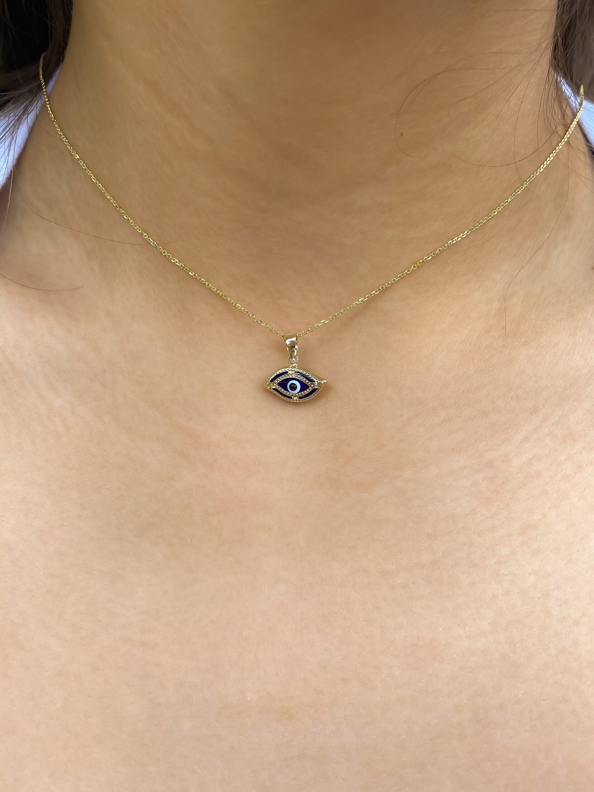 This dark blue evil eye pendant is the perfect size for every day wear to ward of the evil eye
