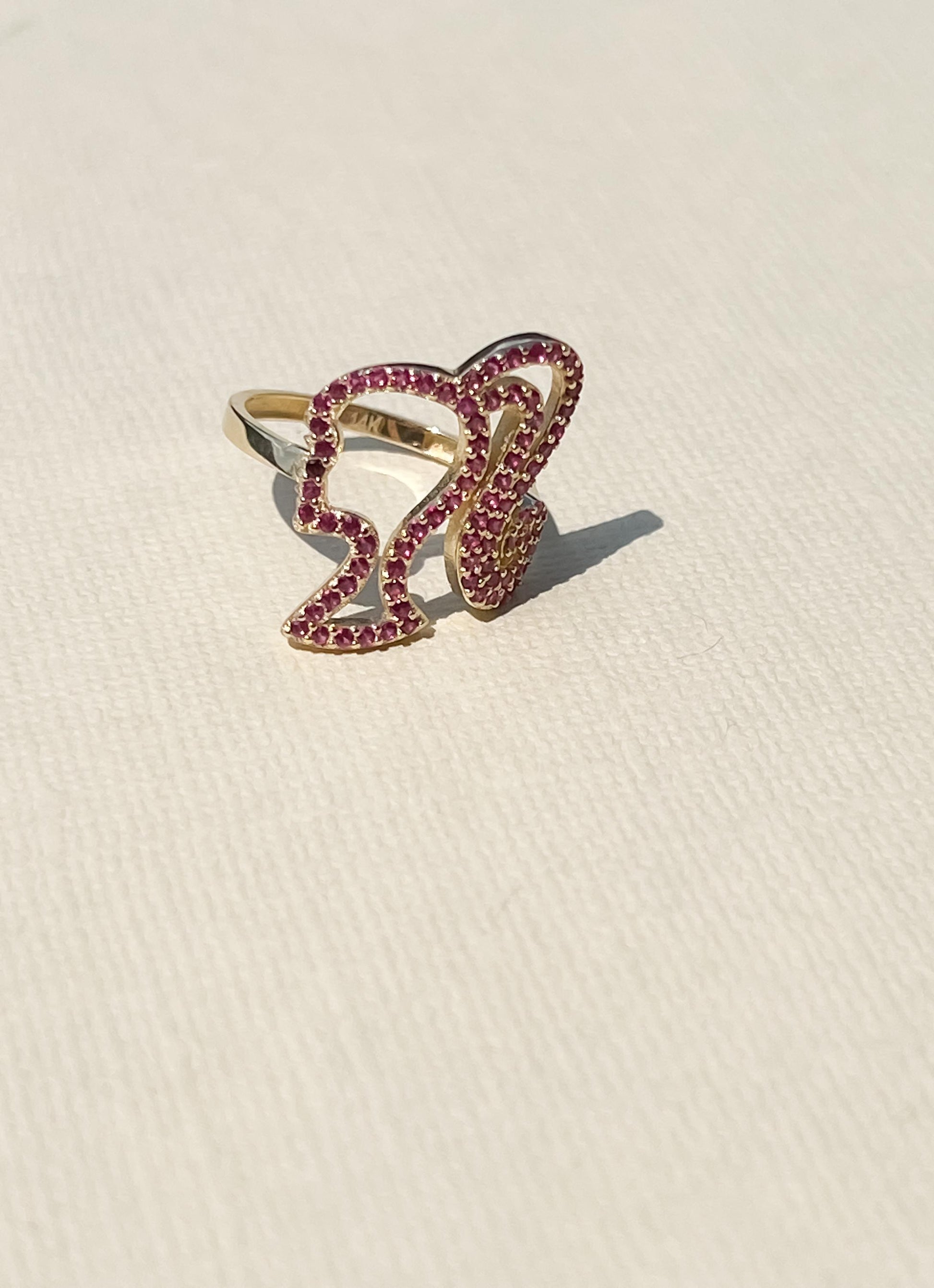 This one of a kind hot pink CZ stone 14k gold ring is the perfect ring for any jewelry collection
