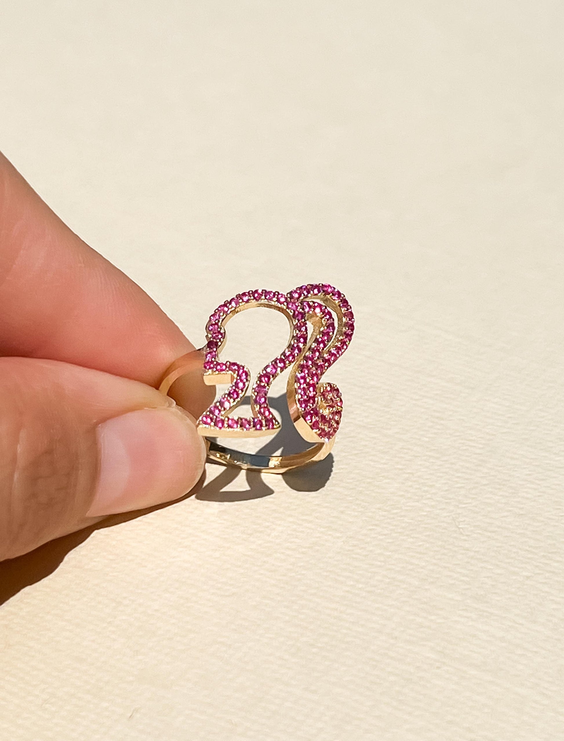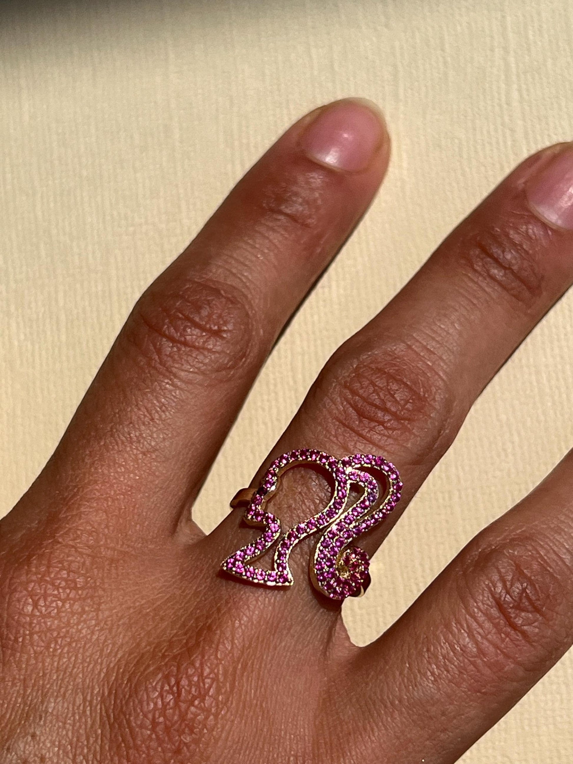 Barbie pink ring pink girly ring teenager pink CZ ring gold and pink ring doll ring statement pink CZ ring gift for her valentines gift ring