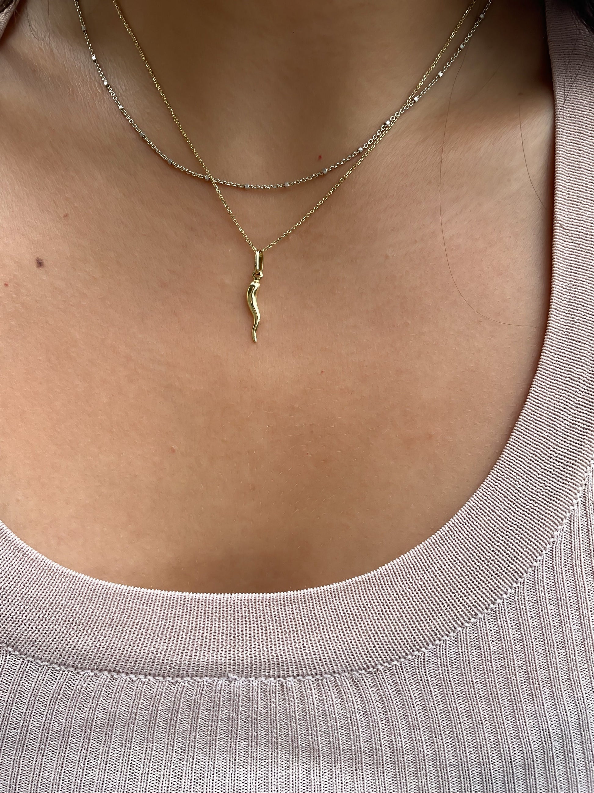 Italian cornilcello dainty 10k horn good luck charm dainty pepper gold italian horn good luck gifts for him malocchio cornicello for kid