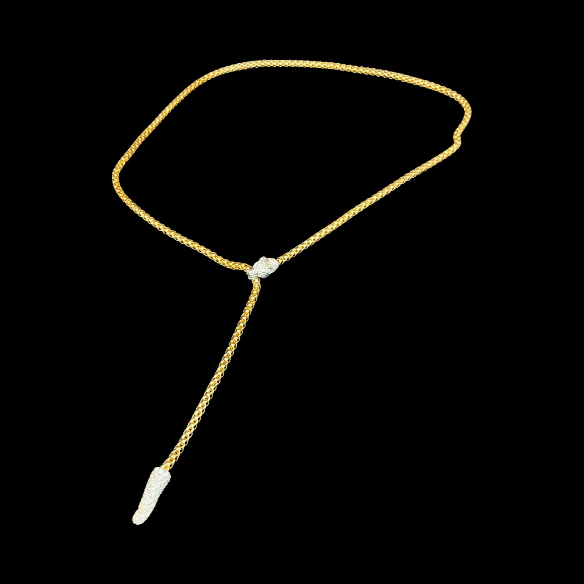 Lariat jaguar biting Necklace cz gold and silver panther Jewelry Statement Y Necklace Jewelry layered adjustable necklace gift for her