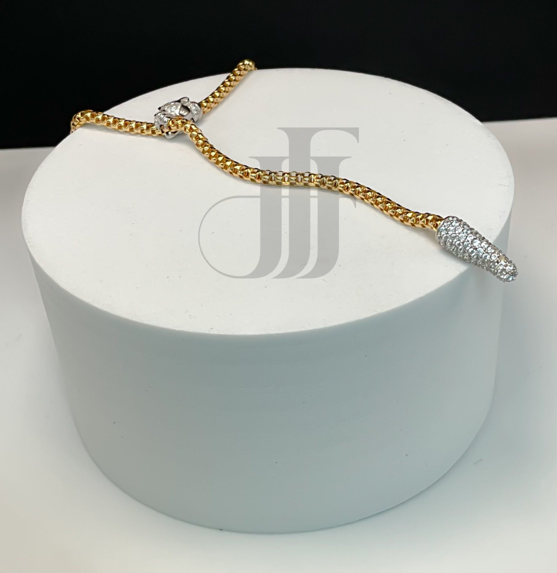 This is a sterling silver with gold plating adjustable jaguar necklace