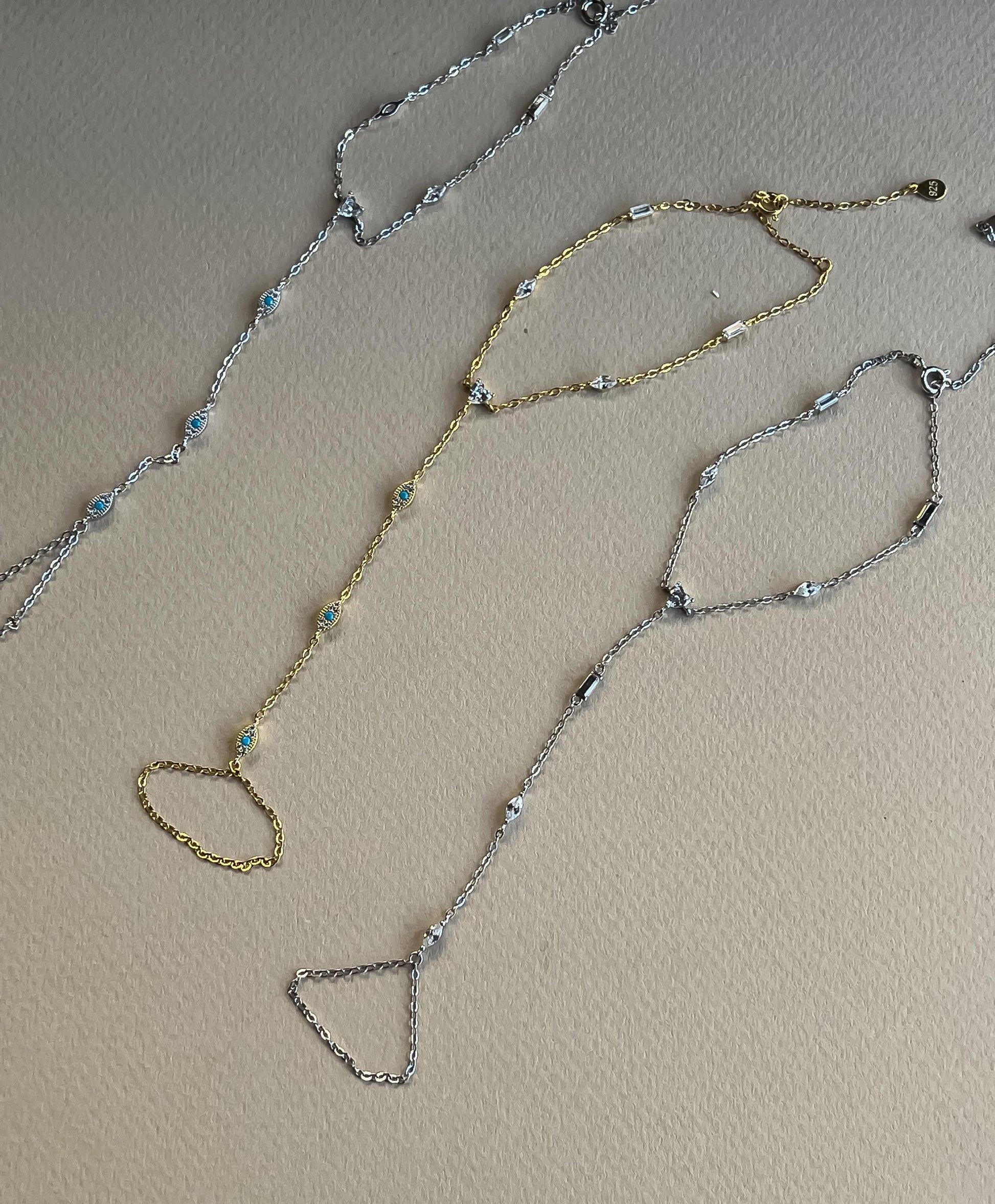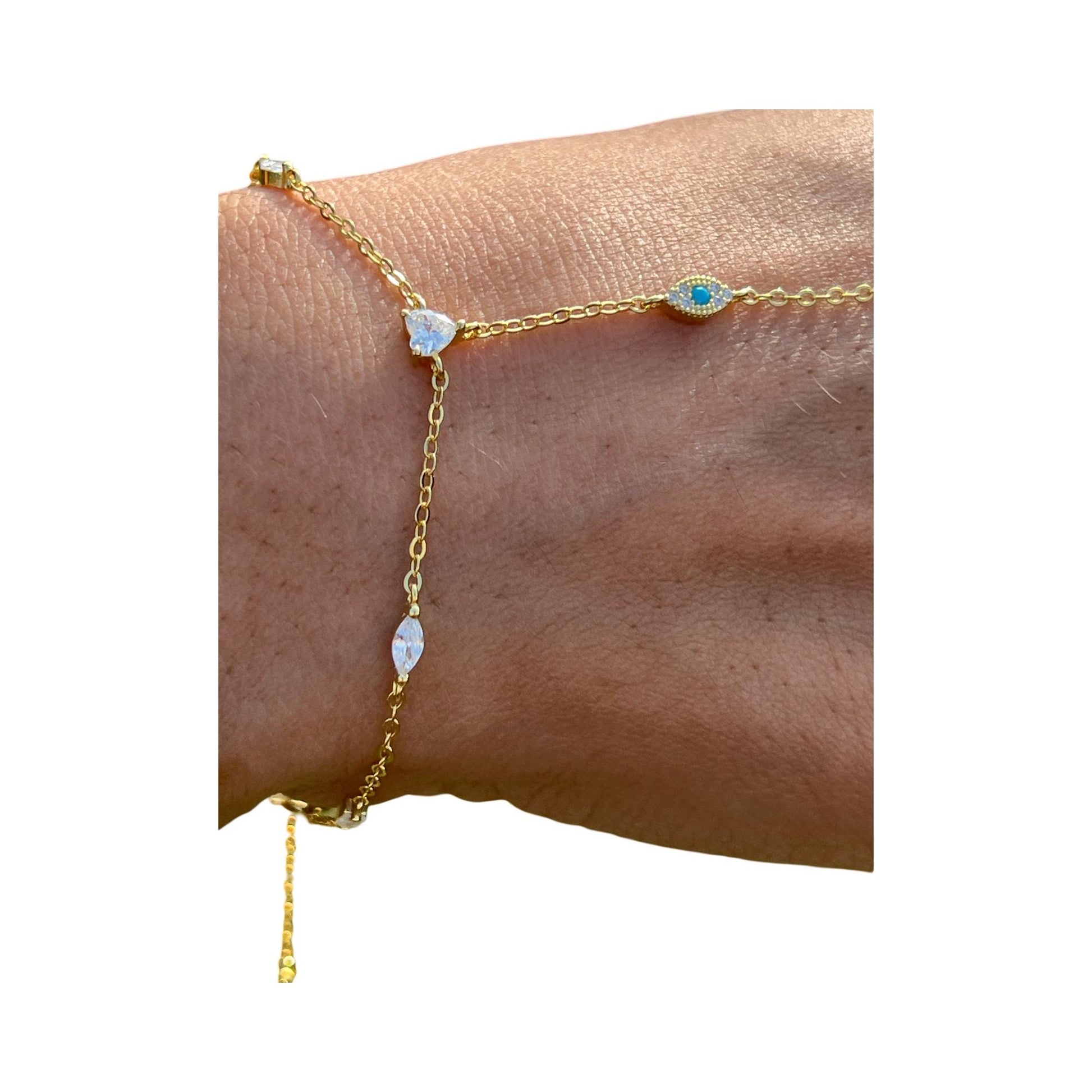This handchain is dainty and perfect for any occasion This dainty gold plated silver handchain bracelet comes packaged ready to be gifted This dainty evil eye handchain comes in sterling silver or gold plated sterling silver