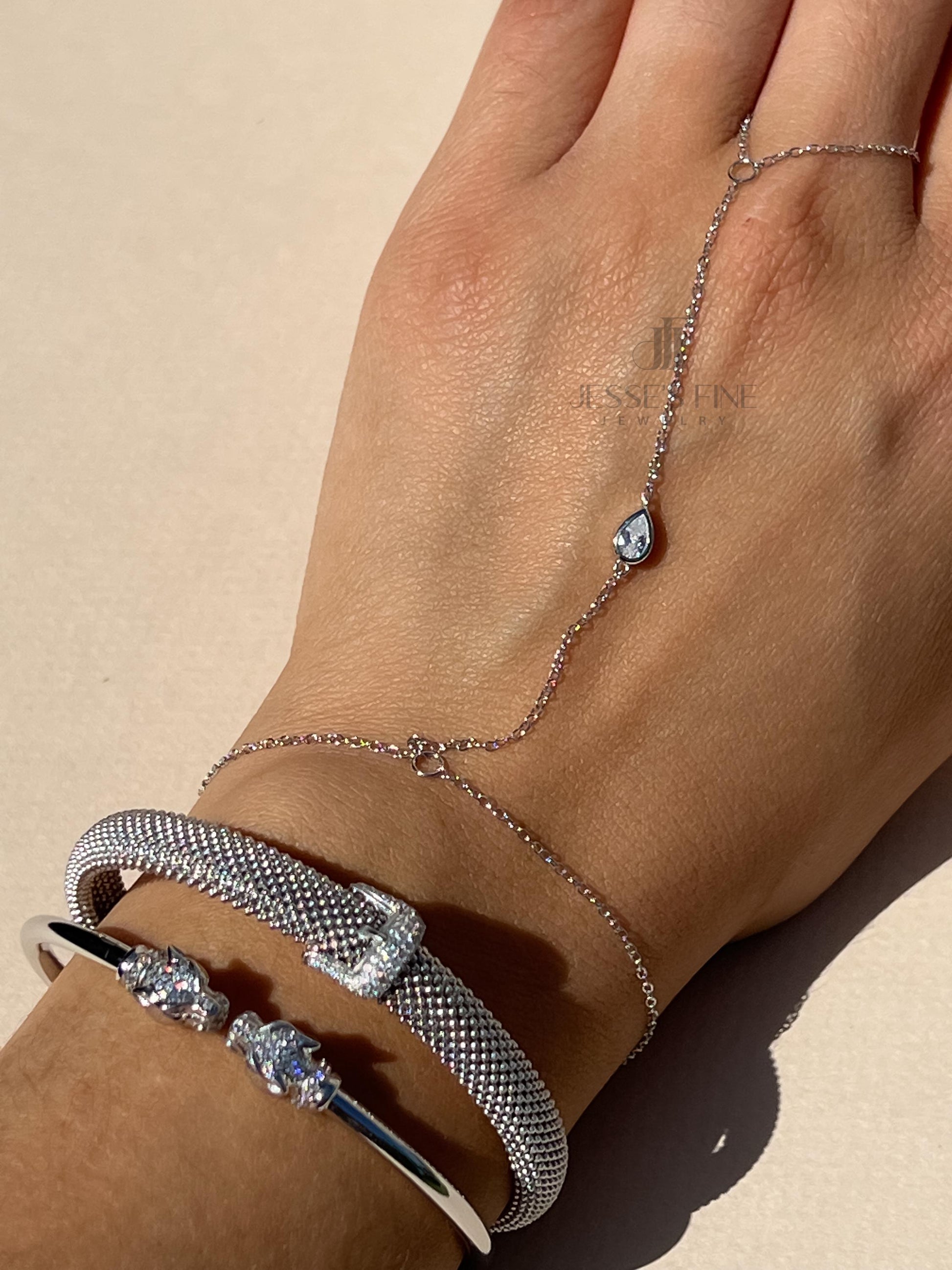 Silver pear stone handchain bracelet simple wrap sterling silver hand chain bracelet trendy hand chain bracelet gift for girl minimalist