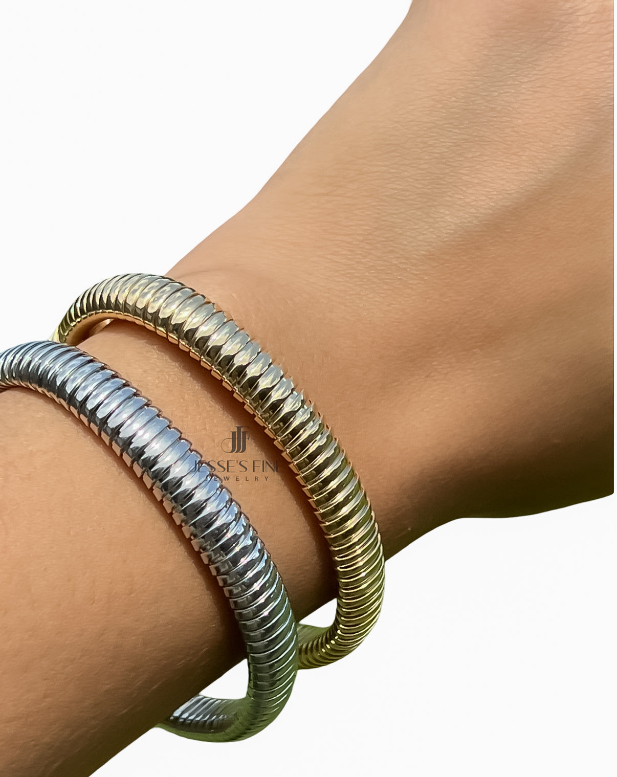 Silver Tubogas Bracelet Sterling Silver Statement Bold Wide Cuff Bangle Flexible Silver Bracelet Everyday ribbed bracelet