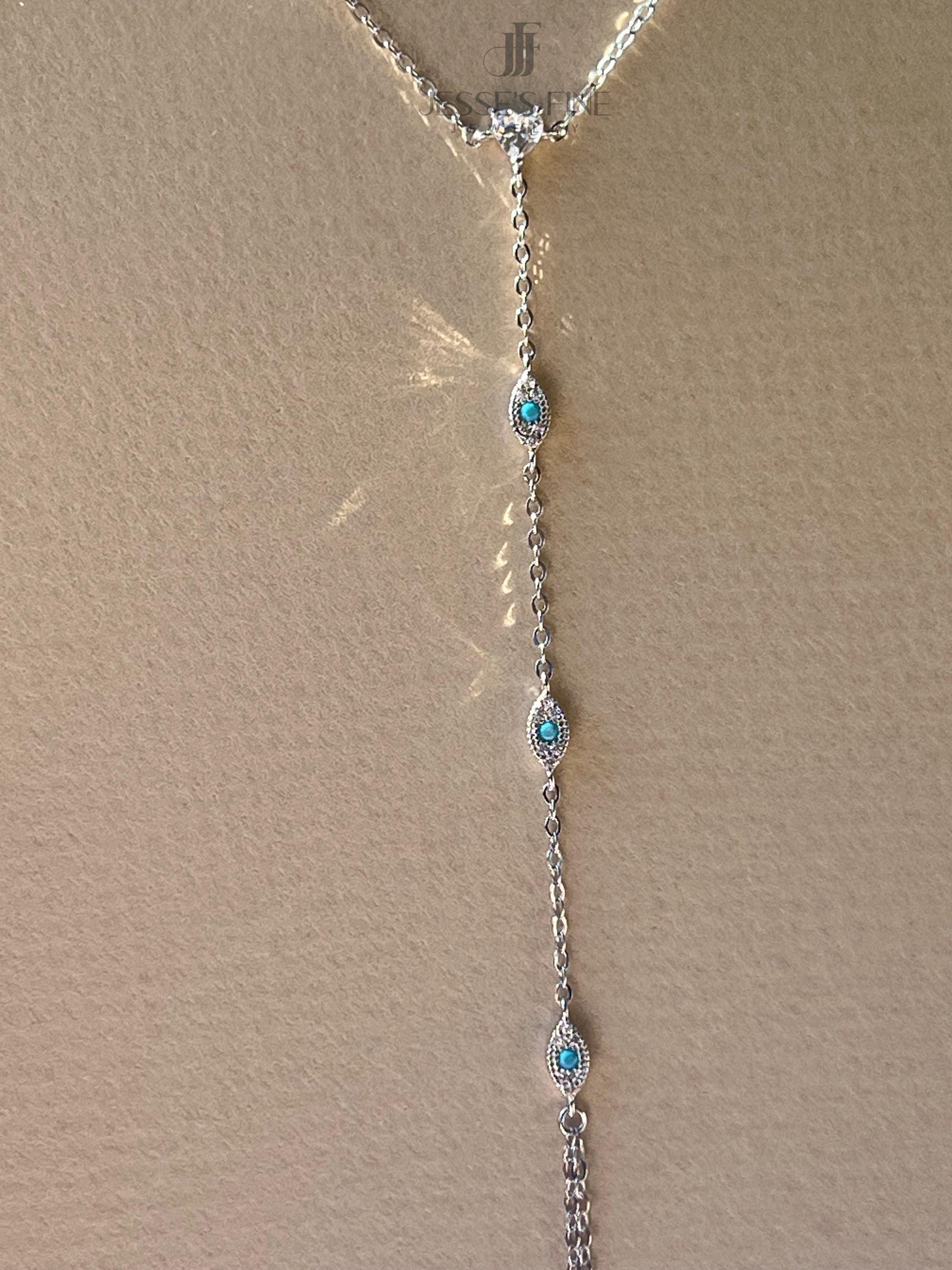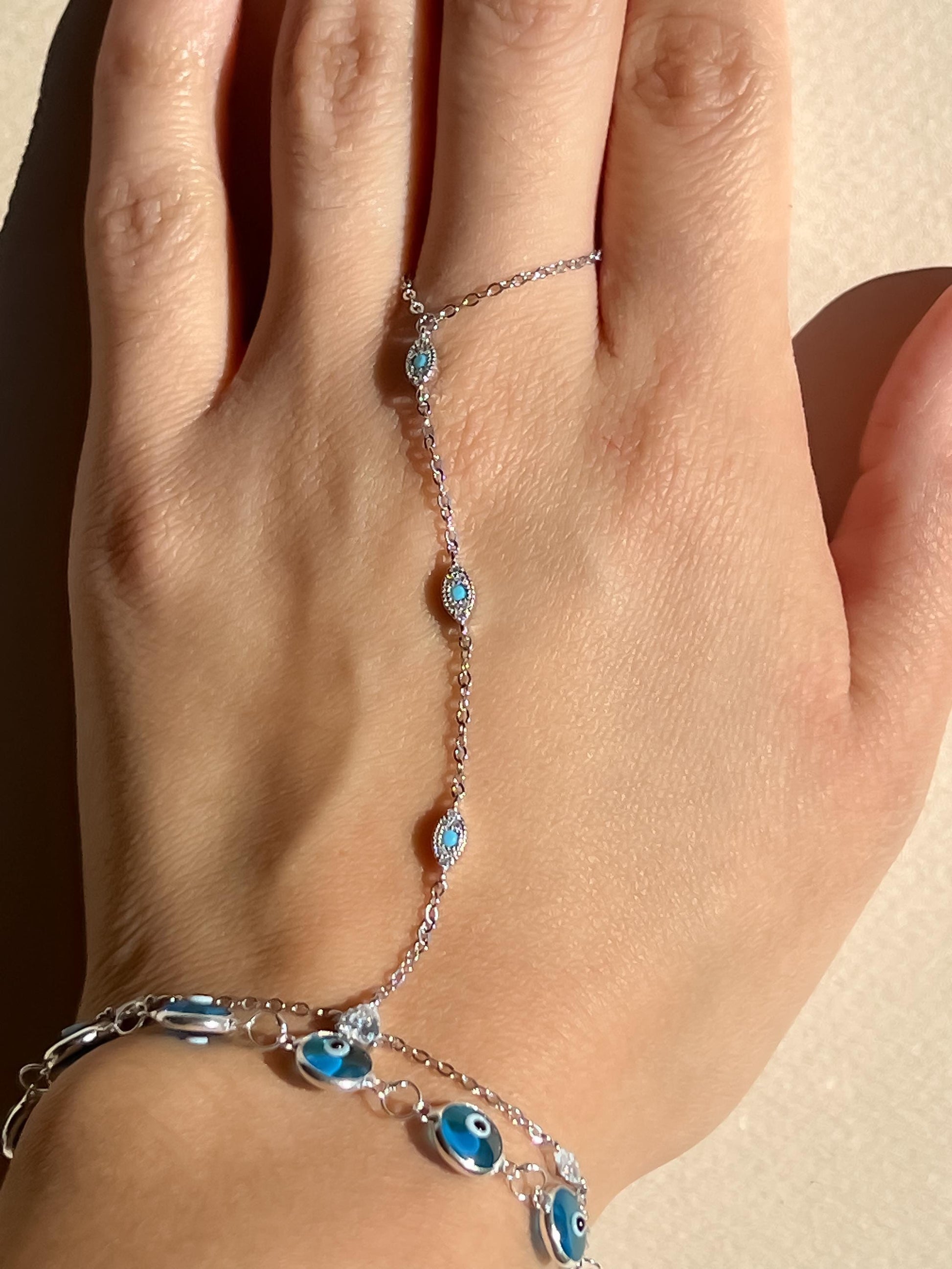 Turquoise evil eye dainty multi stone handchain bracelet CZ evil eye silver hand chain bracelet trendy hand chain bracelet gift for girl